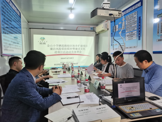 4月29日下午,為把廉潔理念注入項目建設全過程,將項目代建單位、施工單位、監理單位、跟蹤審計單位等各方納入廉潔風險防控范圍,壓實各方責任,渝海公司紀委、渝高集團紀委聯合開展金山小學棲霞路校區校舍擴建項目廉潔風險聯防聯控暨廉潔文化進項目活動。副總經理陳閣琳出席。