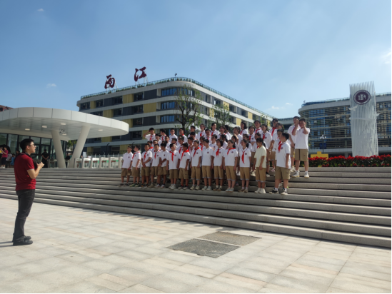 (剛踏入新階段的孩子們由教師帶隊(duì)在學(xué)校精神豐碑下合照留影)