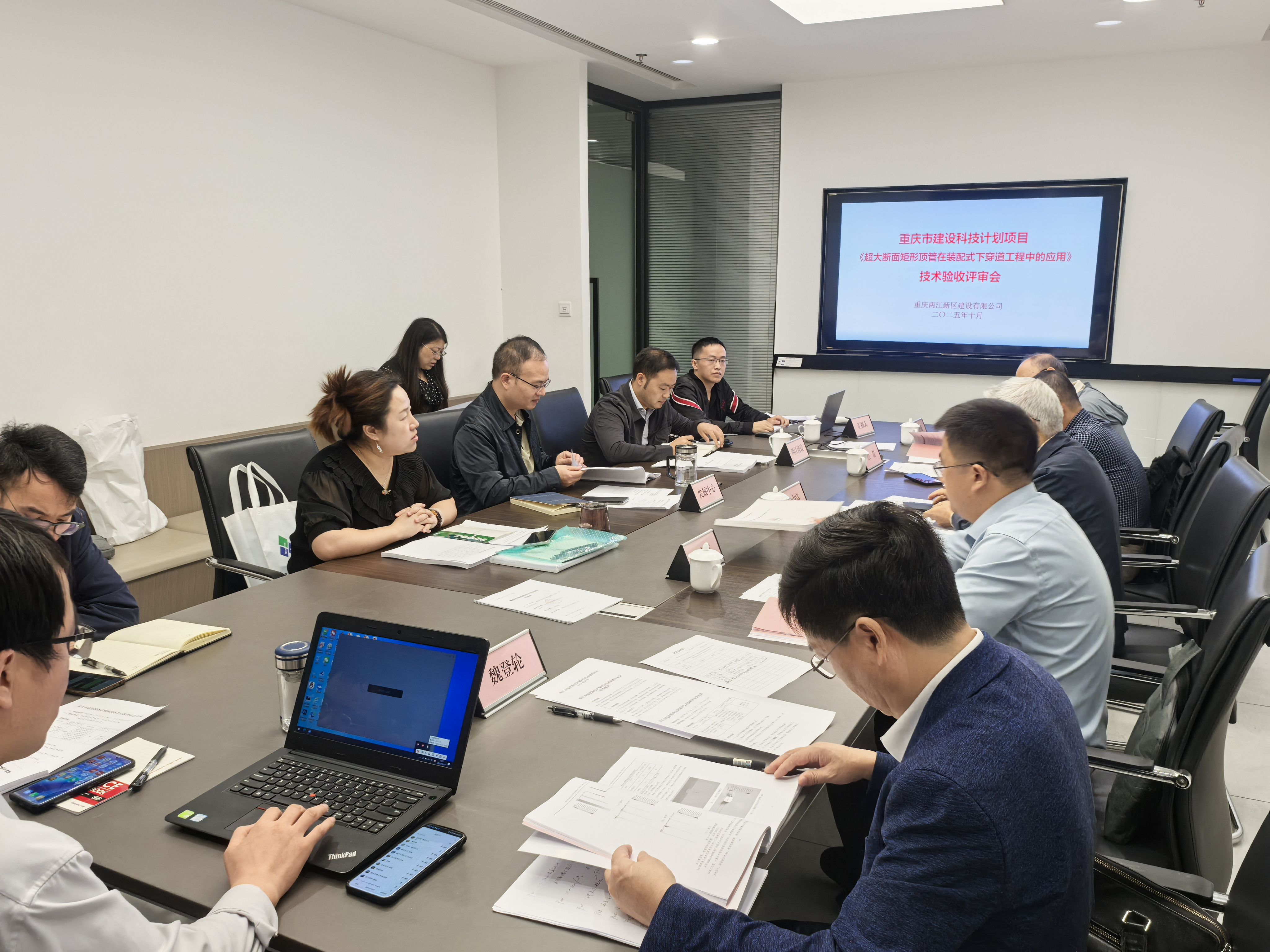 近日,兩江建設(shè)公司承擔(dān)的重慶市建設(shè)科技計(jì)劃項(xiàng)目《超大斷面矩形頂管在裝配式下穿道工程中的研究與應(yīng)用》順利通過(guò)技術(shù)結(jié)題驗(yàn)收。該課題聚焦重慶“兩江四岸”復(fù)雜地質(zhì)條件下地下空間開(kāi)發(fā)難題,以超大斷面矩形頂管技術(shù)為核心,為山城下穿道工程提供了“高效、安全、綠色”的解決方案。